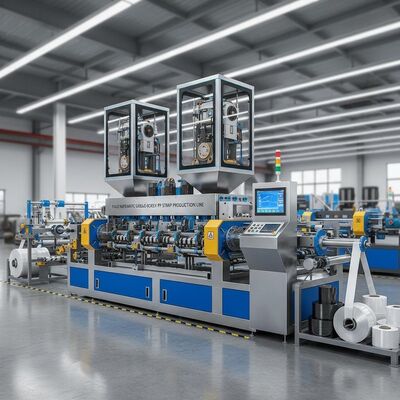 خط طحن مزدوج المسمار عالي الأداء مصمم لتصنيع 4 أشرطة من حزام PP بدقة وكفاءة.يضمن نظام الإنتاج الآلي هذا إنتاجًا عالي الجودة ثابتًا لمصانع التصنيع.